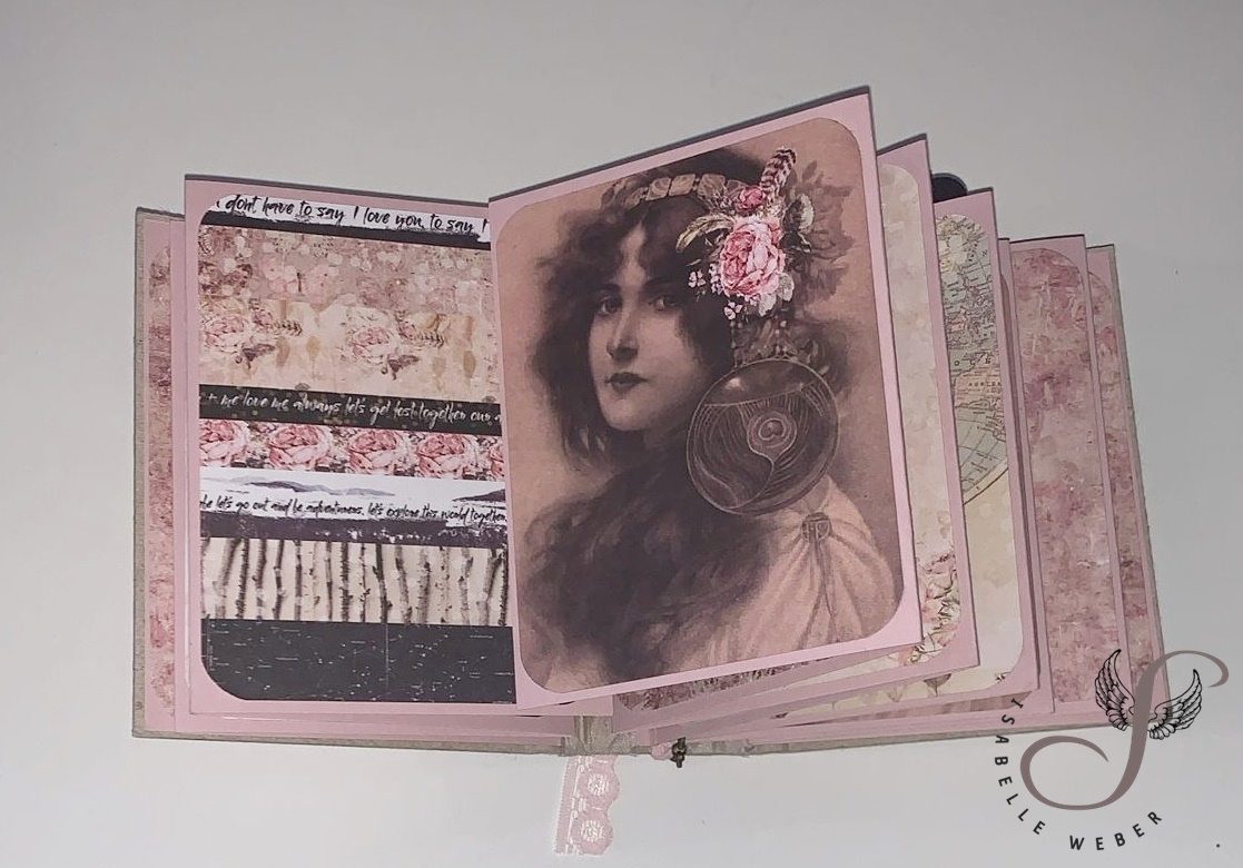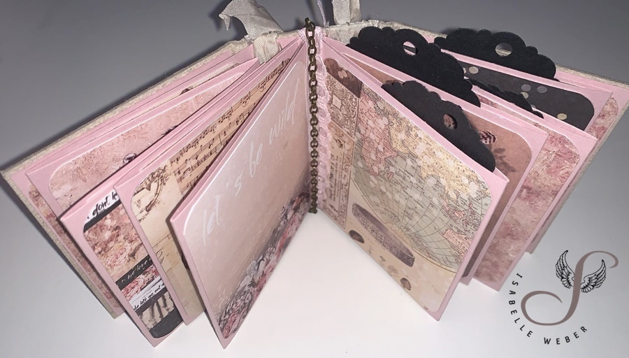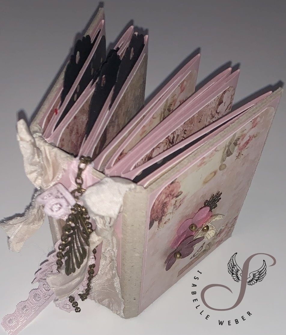Materialliste: DIY 3x4" Album in Rosé (SRH60410): scrapbookheaven - Journaling Notcards: Prima Design - Bänder: Old Fashion Ribbon - Spitze: Dovecraft - Metallteile: privat