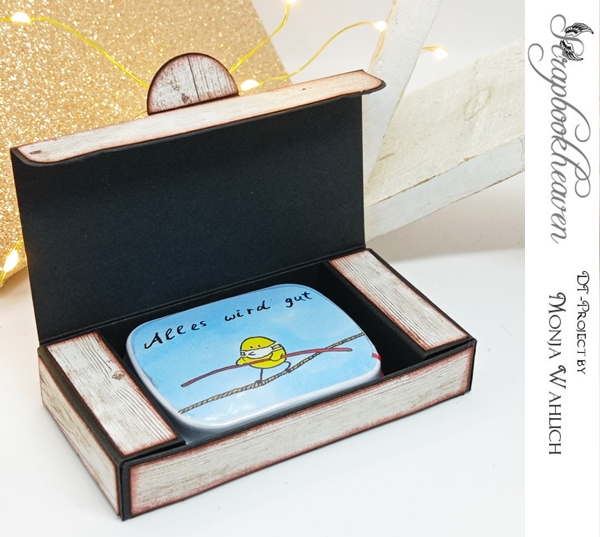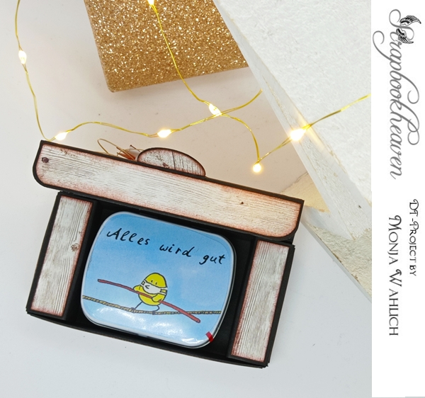 Was braucht man in diesem Jahr wohl mehr als manchmal ein : "Alles wird gut" . Als ich diese kleinen Pfefferminzdrops-Döschen gesehen habe musste eine Verpackung dafür her. Es ist ein kleines und schnelles Goodie für jeden, der etwas Aufmunterung braucht. Hier kann man wunderbar alle seine Reste verwerten, für die man sonst nur schwer Verwendung findet. Aber es gibt Papiere, die sind einfach zu schade zum wegwerfen. Da sammelt man jeden Schnipsel. Die Anleitung für die "Alles wird gut"- Box findet Ihr in der Facebook Gruppe * Scrapbookheaven Cloud 7 * .