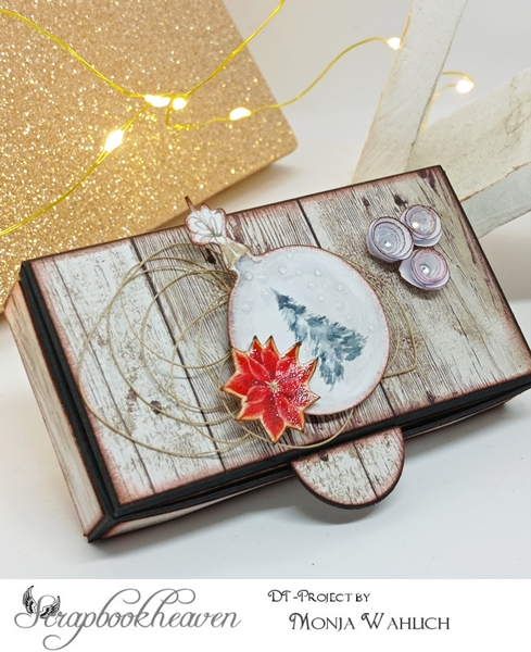 Materialliste: Cardstock: American Crafts - Motivpapier: Winterland von Mintay Papers - Pearl Drops: Little Birdie - Leinenzwirn: Scrapbookheaven - Strasssteine: privat