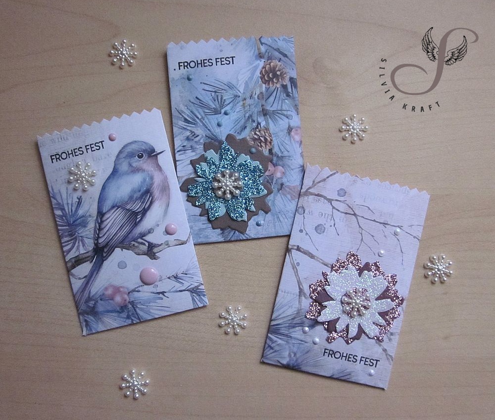 Dieses Jahr habe ich erneut an einem Weihnachtsbasar teilenommen. Da Gutscheine ein häufiges Geschenk sind, habe ich schlichte Gutschein-Verpackungen gebastelt. Die Verpackungen habe ich mit